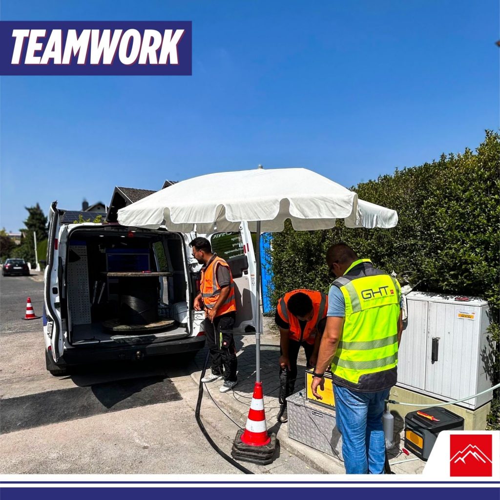 Nach dem Einblasen des Kabels folgte der Crosscheck โ ein Verfahren, das aus der Luftfahrt bekannt ist. Dabei schauen immer zwei Personen unabhรคngig voneinander รผber die Arbeit: Der eine fรผhrt die Kontrolle durch, der andere prรผft anschlieรend nochmals nach. Unser Bereichsleiter fรผr LWL & Netzmontage, Samet ลEN, war persรถnlich vor Ort und hat den Crosscheck gemeinsam mit den Kollegen durchgefรผhrt.